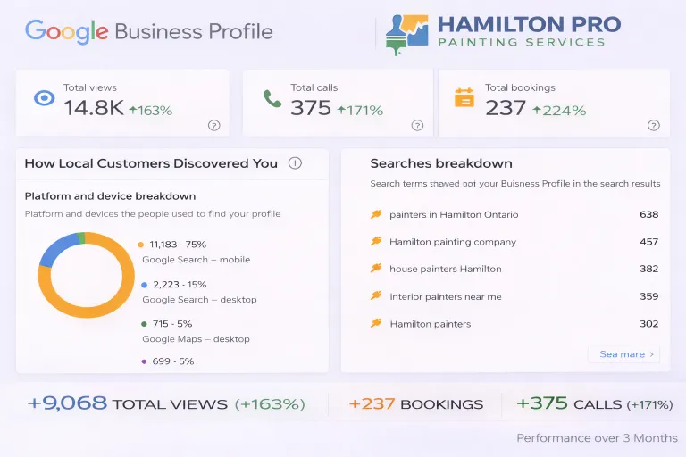 By combining conversion-focused web design with strategic content writing, Hamilton Pro Painting Services built a strong digital presence and positioned itself as a trusted local painting contractor.