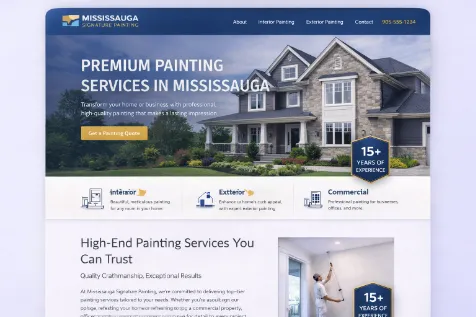 Mississauga Signature Painting is a professional residential and commercial painting company serving Mississauga and surrounding areas. The company specializes in high-end interior and exterior painting projects for homes, offices, and commercial properties. Known for clean finishes, attention to detail, and reliable service, the goal was to build a premium online presence and attract quality local painting clients.
